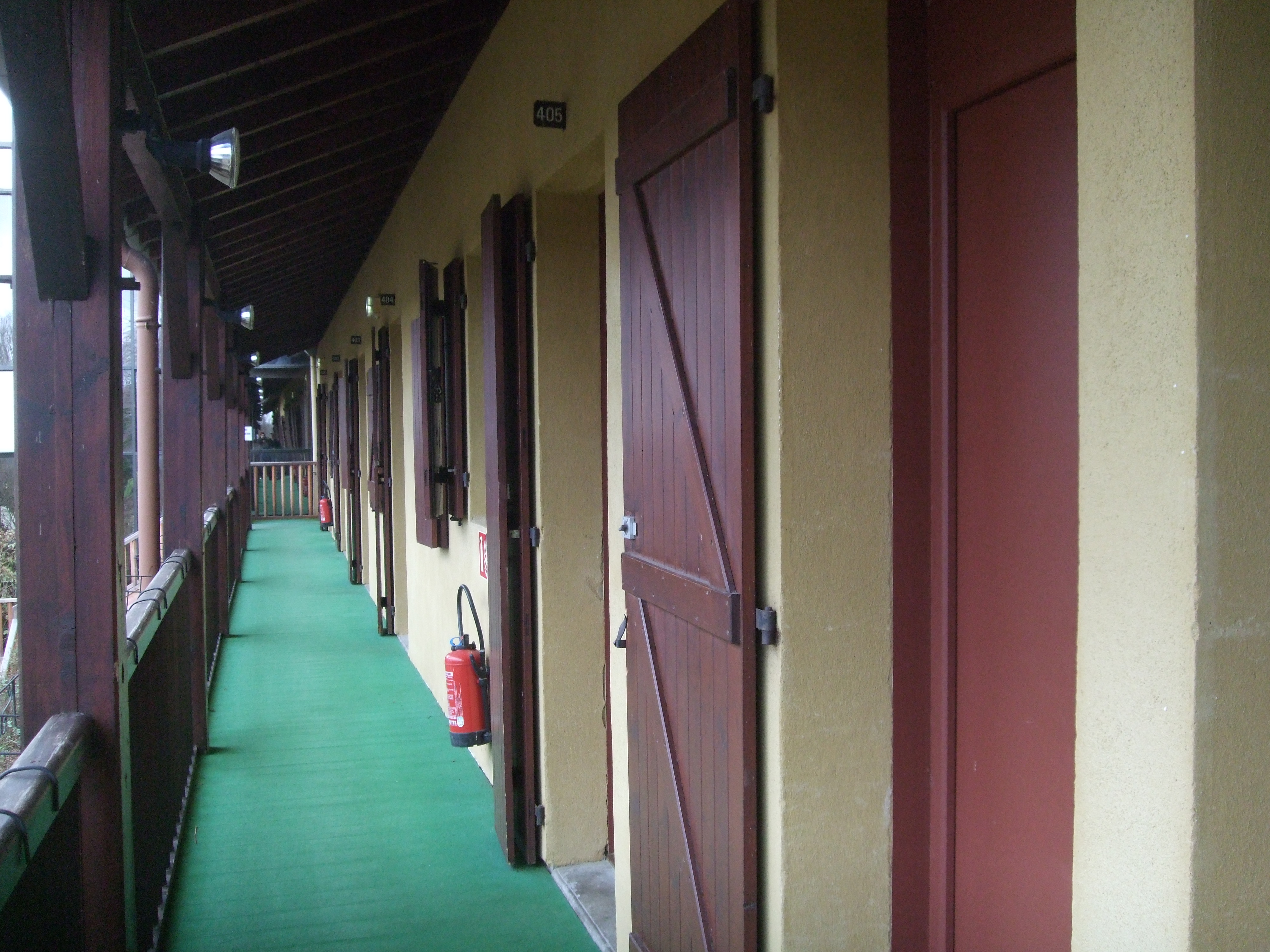 Nous avons pu également enfin admirer le cadre (rappel : une arrivée de nuit n’est pas l’idéal pour admirer le paysage) qui est juste superbe : du vert partout, du reposant.. et même une piscine plein air ! Qu’est-ce que ça doit être en été, à se prélasser dans la piscine avant d’aller à sa séance de golf, une vraie vie de riche (j’veuuuux y retourner en été) 🙂