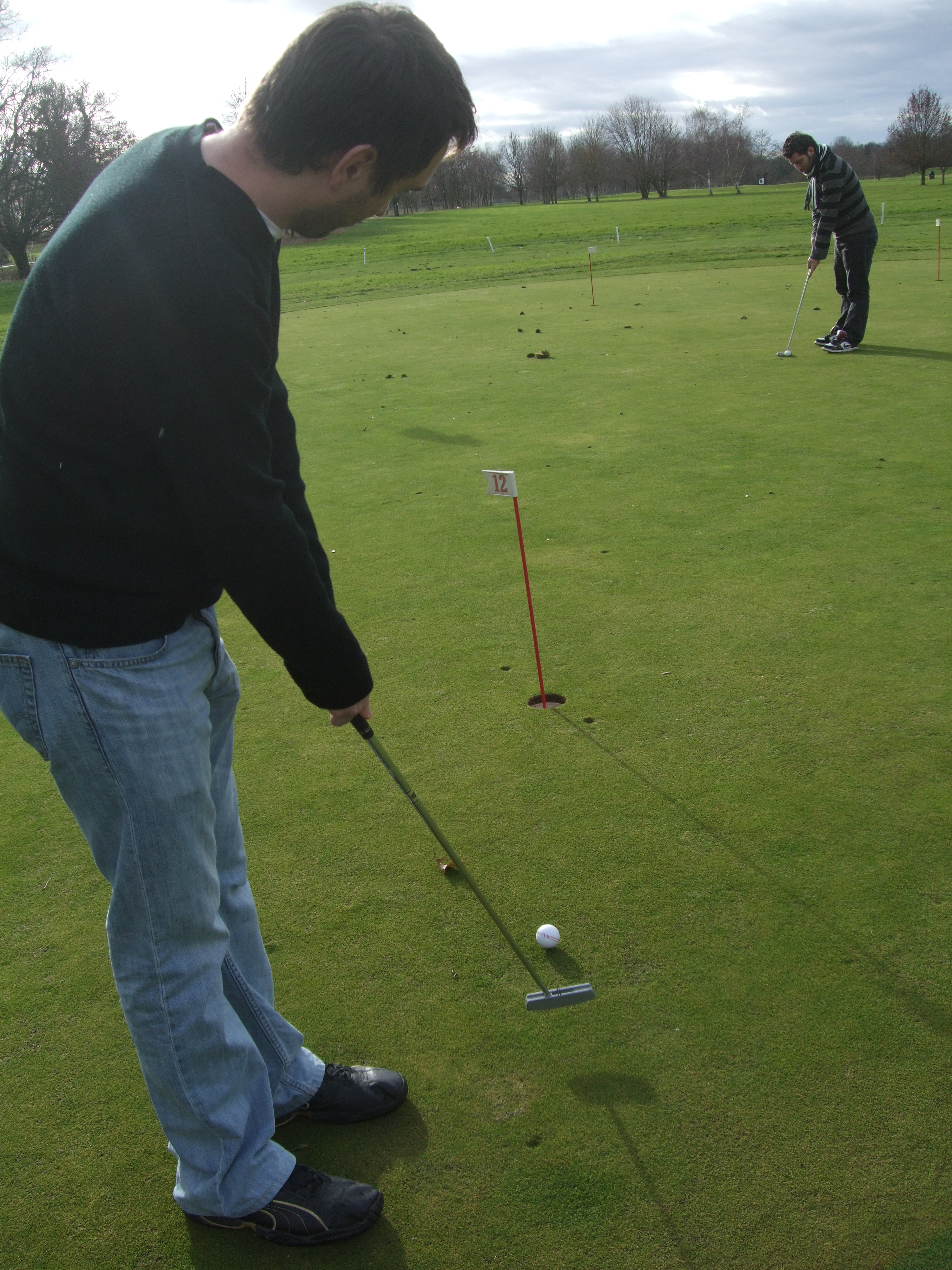 Eh oui, c’est la dernière partie du week-end : une initiation au golf ! Alors, pour tout vous avouer, on était pas trop chaudes pour cette initiation, limite si ça avait été annulé, ben tant pis. Bon, là, on avait pu mettre un créneau à midi et finalement, ça aurait été regrettable de ne pas faire cette initiation car on s’est tous amusés !